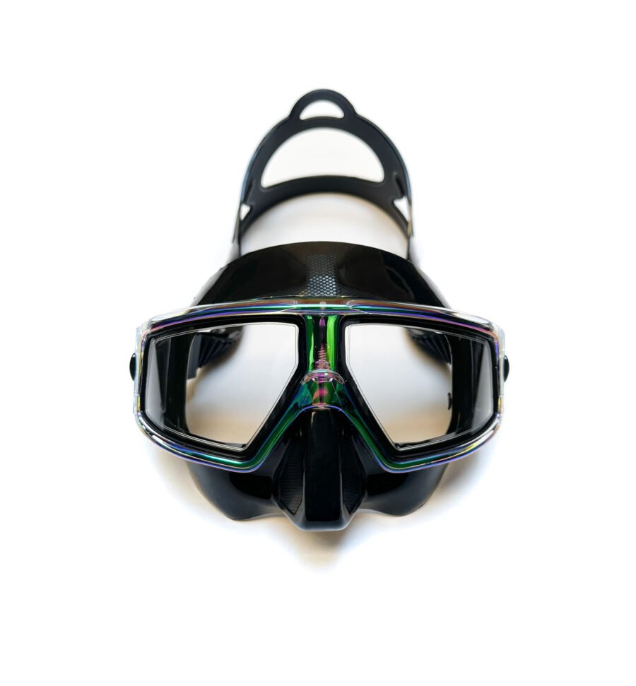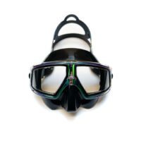 Silicona negra con marco tornasol. Peso 116 gramos. Careta de bajo volumen diseñada especialmente para realizar actividades deportivas, construida tanto para sumergirse como para nadar en superficie. Su tamaño pequeño y marco liso reduce la resistencia con el agua. Con amplio rango de visión gracias a su diseño. Correas graduables.