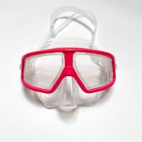 Silicona transparente y marco color fucsia.  Peso 116 gramos.  Careta de bajo volumen diseñada especialmente para realizar actividades deportivas, construida tanto para sumergirse como para nadar en superficie.  Su tamaño pequeño y marco liso reduce la resistencia con el agua.  Con amplio rango de visión gracias a su diseño. Correas graduables.
