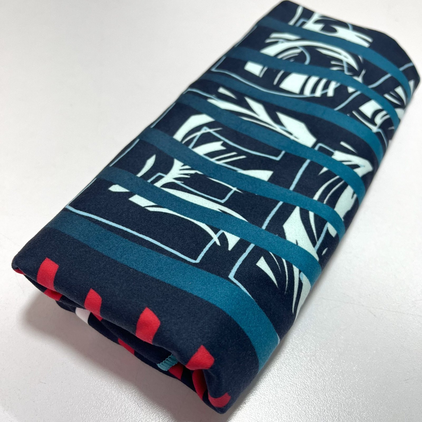 Toalla de microfibra 40% poliester RECICLADO + 48% poliester +12% nylon.