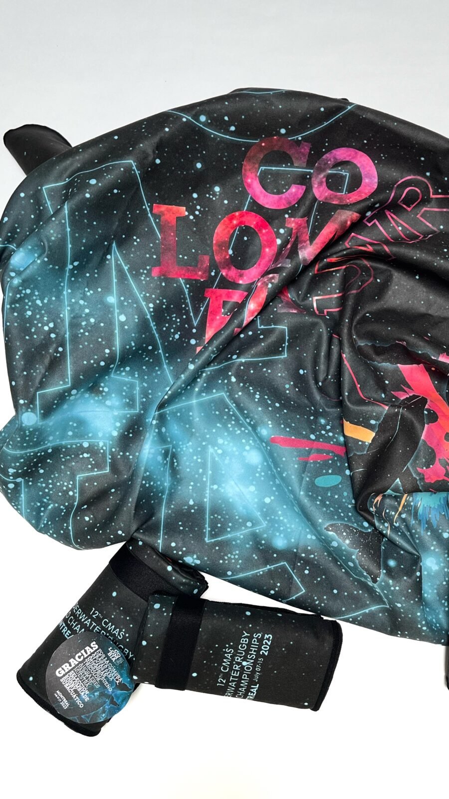 Toalla de microfibra 40% poliester RECICLADO + 48% poliester +12% nylon.